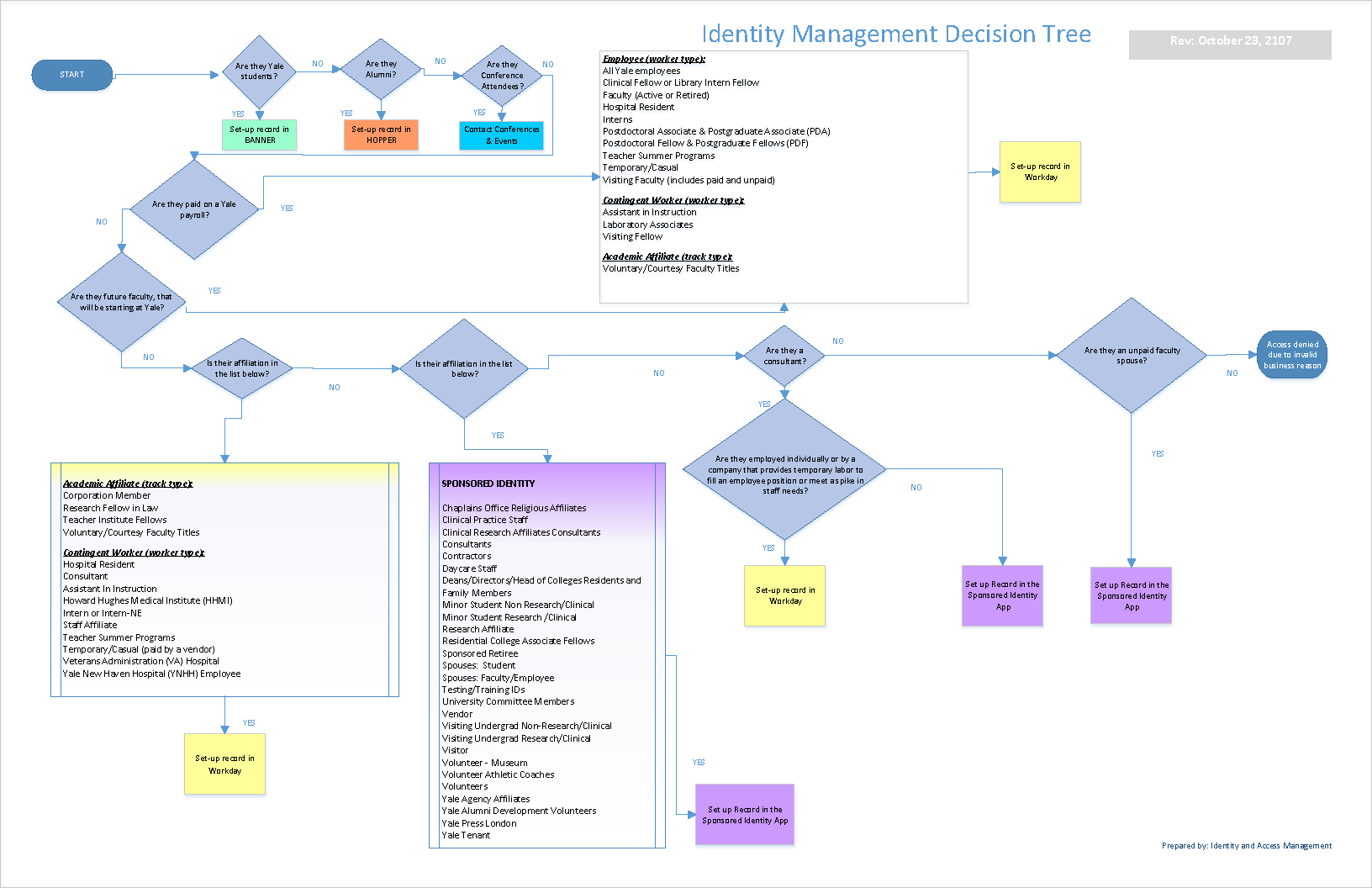 The following diagram will guide you through deciding if someone should be created as a Sponsored Identity or setup in Workday.